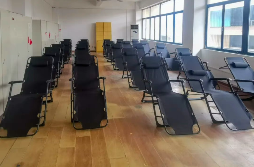 外高橋造船對現(xiàn)有場地資源進行優(yōu)化改造,在辦公樓、食堂等17處區(qū)域為員工設立了休息區(qū)域,為高溫天奮戰(zhàn)在一線的職工提供舒適、充足的納涼空間。休息點設有空調、風扇等降溫設備,并根據(jù)各部門使用環(huán)境,配備折疊床、涼席等物資,滿足一線職工高溫休息需求。